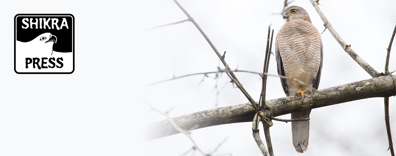 Shikra (accipiter badius), from the Hindi, meaning hunter, is a small bird of prey similar to other sparrowhawk species. Also known as the Little Banded Goshawk (in pinyin he’er ying) it is common throughout Africa, India and Asia, and is famed for its bravery.